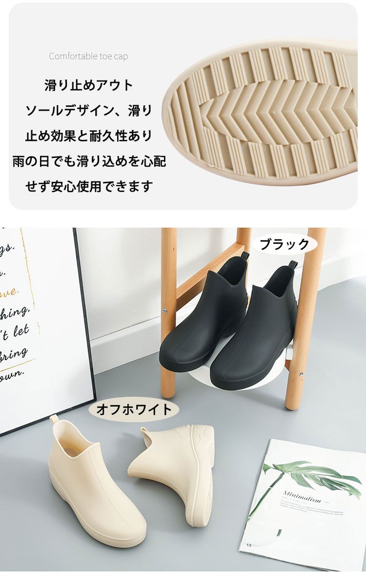 レインブーツ レディース レインシュー 靴 人気 ブラック オフホワイト 22.5cm(35#) 23cm(36#) 23.5cm(37#) 24cm(38#) 24.5cm(39#) 25cm(40#)