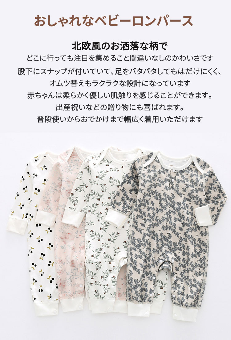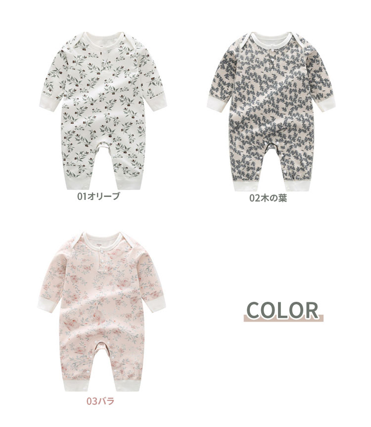 ベビー 長袖ロンパース 赤ちゃん 女の ベビー ベビー服 ファッション カバーオール ロンパース 人気 01オリーブ 02木の葉 03バラ 66cm 73cm 80cm 90cm