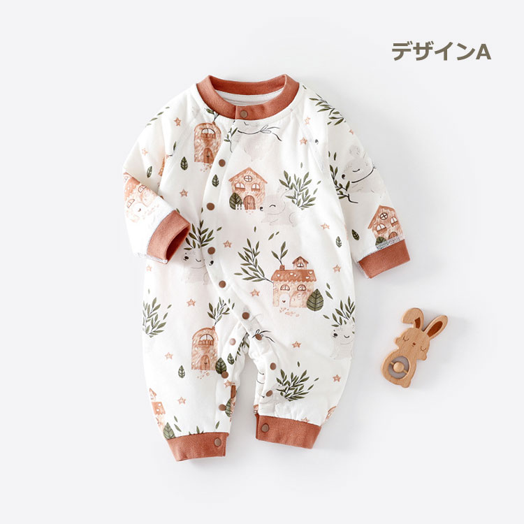 秋冬 ベビー ロンパース 新生児 赤ち ベビー ベビー服 ファッション カバーオール ロンパース 通販 デザインA デザインB デザインC デザインD 59cm 66cm 73cm 80cm 90cm