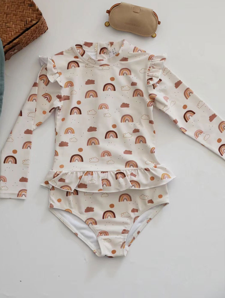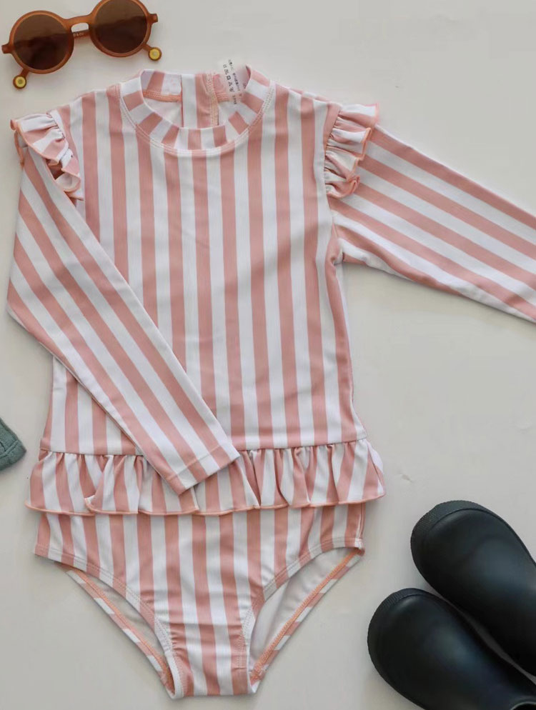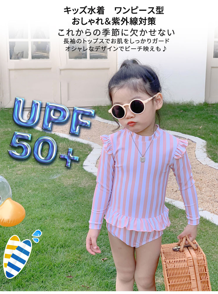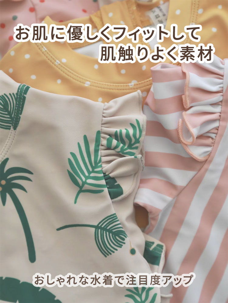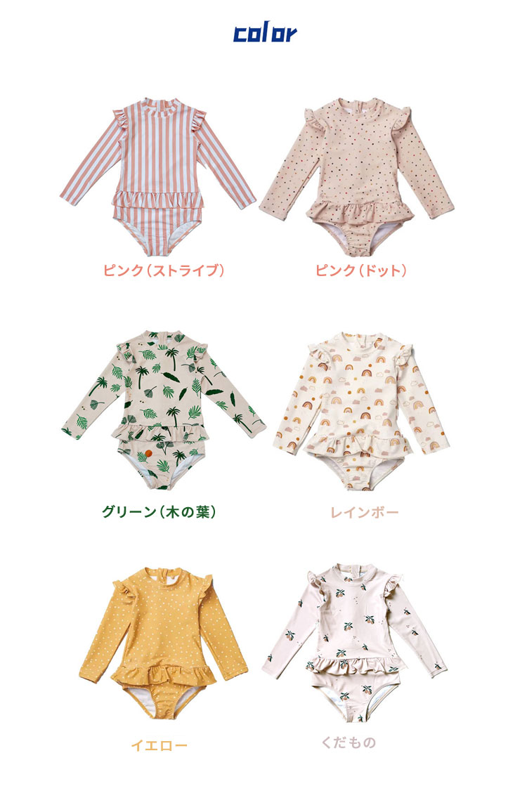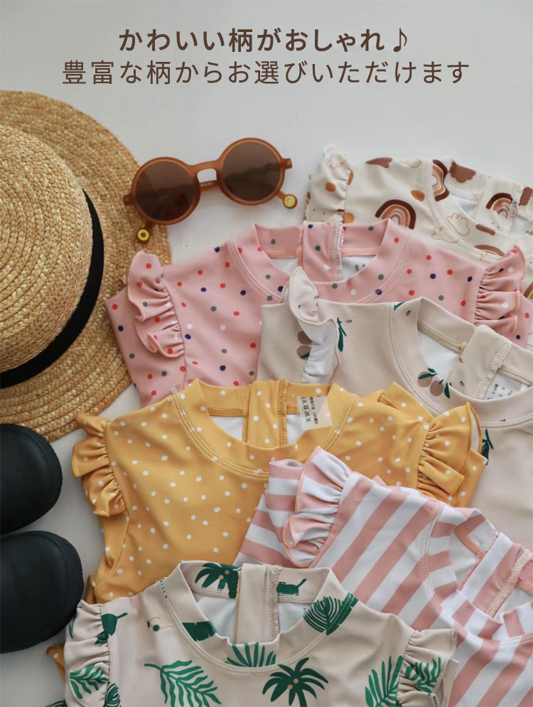 キッズ 女の子 水着 ワンピース かわ キッズ 水着 36%Off ピンク(ストライブ) ピンク(ドット) グリーン(木の葉) レインボー イエロー くだもの 80cm 90cm 100cm 110cm 120cm 130cm