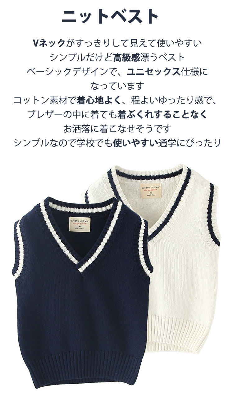 ニットベスト Vネック スクールベスト キッズ ベビー マタニティ 続々登場 ネイビー ホワイト 90cm 100cm 110cm 120cm 130cn 140cm 150cm 160cm 170cm