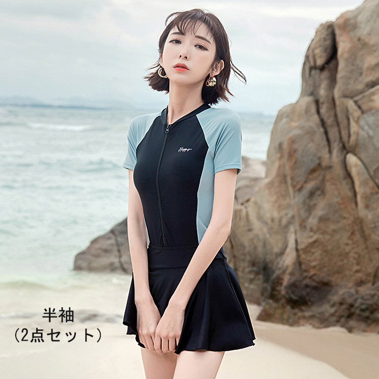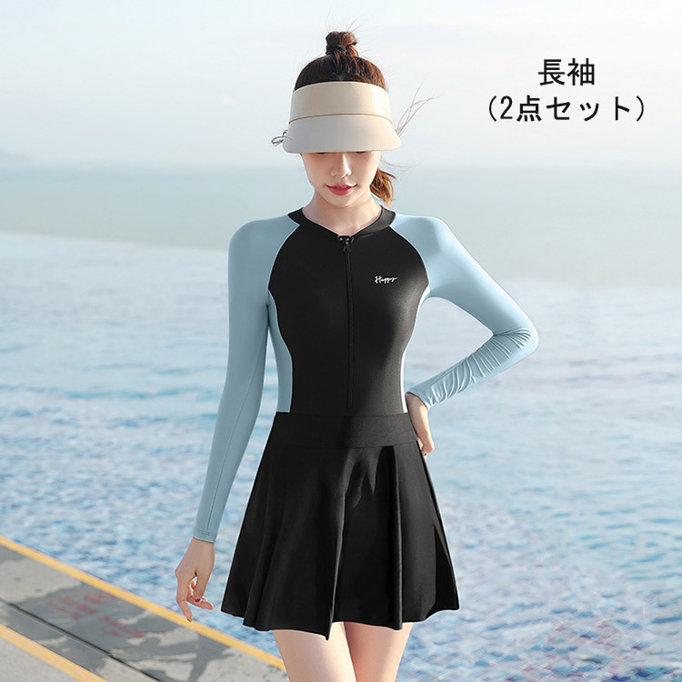 水着 レディース 半袖 長袖 2タイプ レディースファッション 新作 半袖(ワンピース) 長袖(ワンピース) 半袖(2点セット) 長袖(2点セット) M L XL 2XL