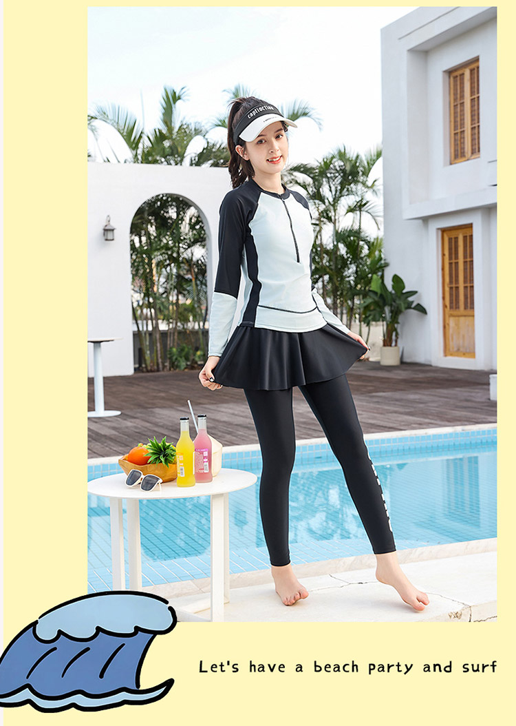 キッズ 水着 女の子 ジュニア 子供水着 長袖 UV対策 日焼け防止 トップス タイツ ショートパンツ 黒 ブラック スクール水着 子ども用 みずぎ セパレート 上下3点セット スイムウエア ラッシュ