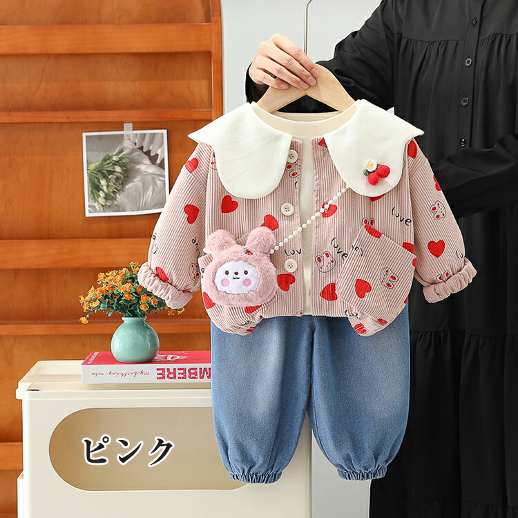 子供服 女の子 春秋 セットアップ 3 キッズ スーツ カジュアルセットアップ カジュアルパンツセット 35%Off ピンク ベージュ 80cm 90cm 100cm 110cm 120cm