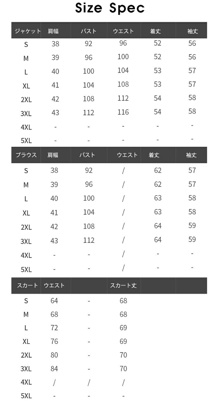 【3XL】丈70cm ウエスト84cmセット内容 3点セット:ジャケット+ブラウス+スカート注意 PC環境・光の具合により、色や素材のイメージが写真と若干異なる場合がございます。