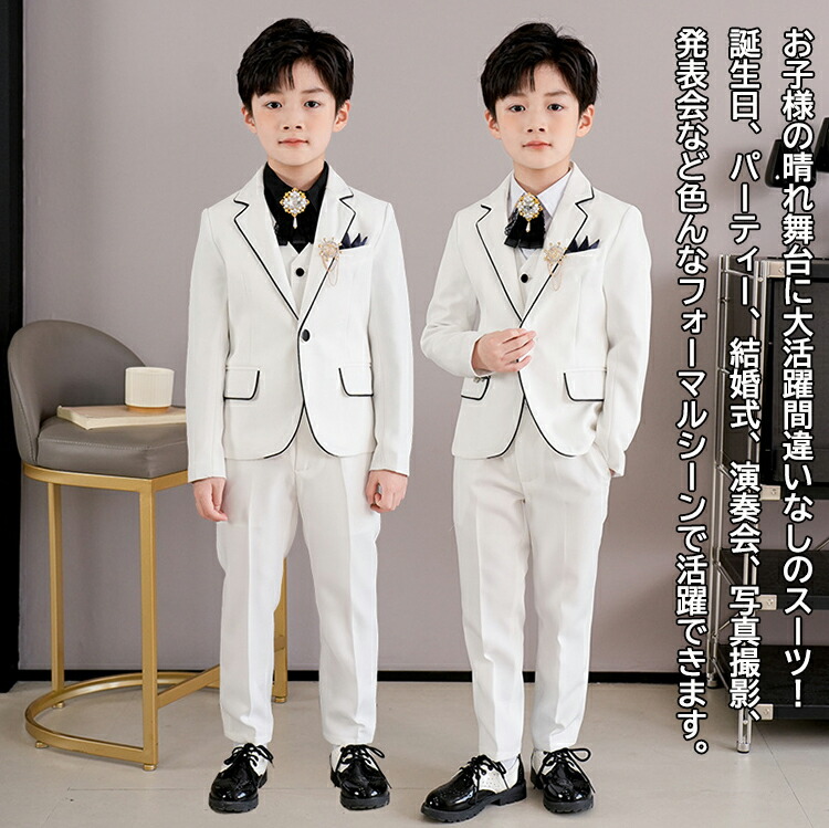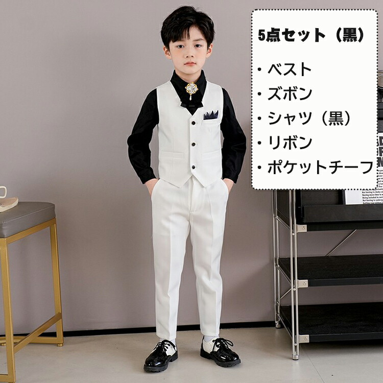 男の子 フォーマルスーツ 白 ホワイト キッズ スーツ カジュアルセットアップ スーツ お得なセール 5点セット(白) 5点セット(黒) 7点セット(白) 7点セット(黒) 110cm 120cm 130cm 140cm 150cm 160cm 170cm