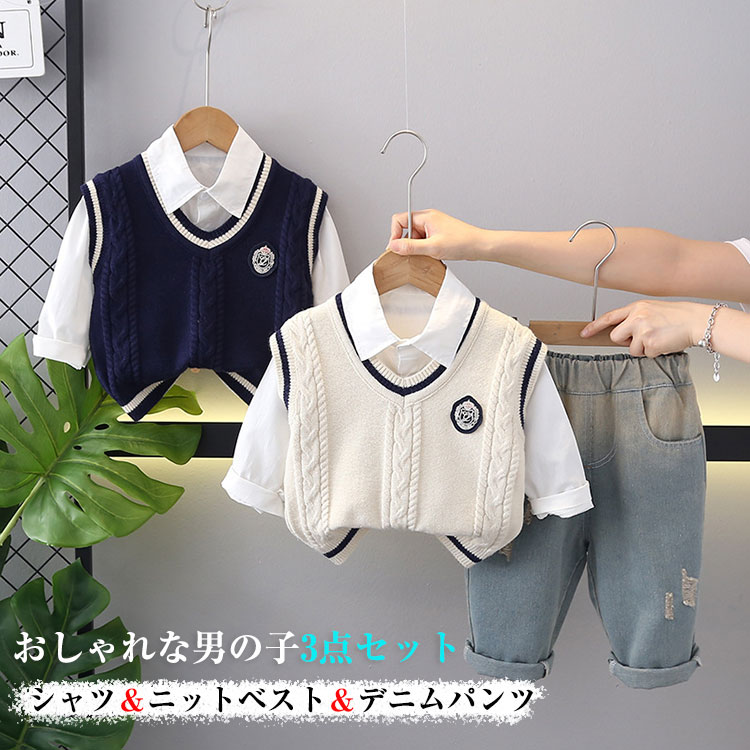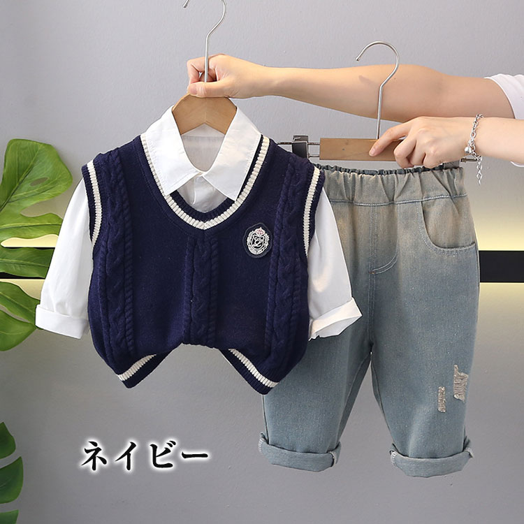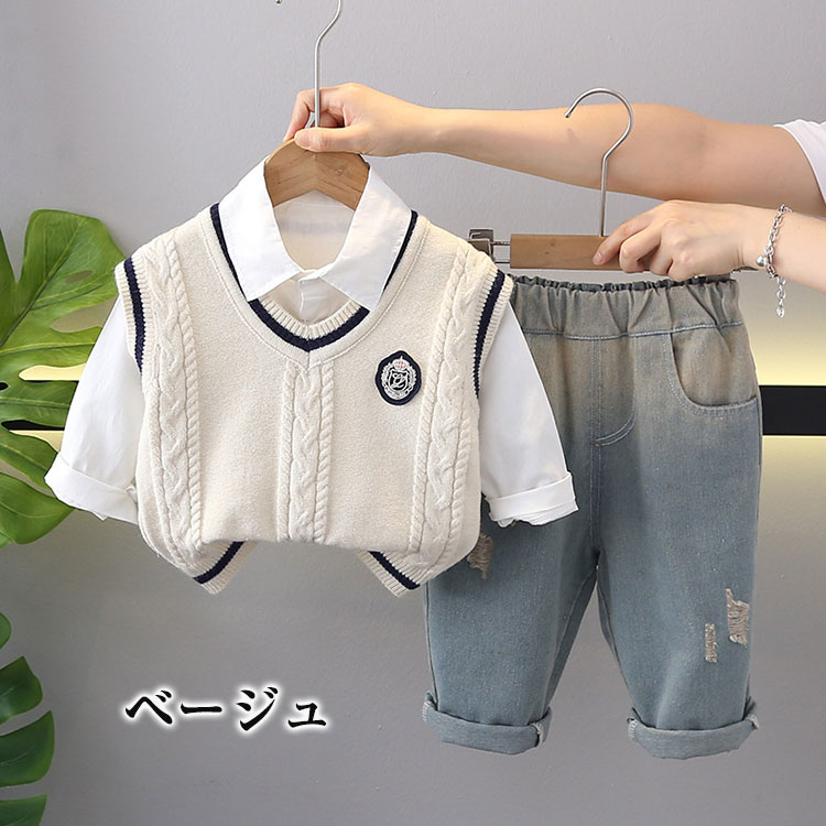 ベビー服 上下セット 3点セット 男の キッズ スーツ カジュアルセットアップ カジュアルパンツセット 割引 ベージュ ネイビー 80cm 90cm 100cm 110cm 120cm
