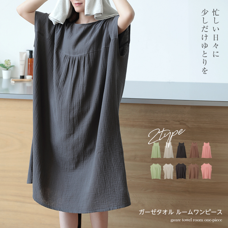 タオルワンピース ルームワンピース 湯上がり フレンチスリーブ ノースリーブ タオル 部屋着 ルームウェア リラックス