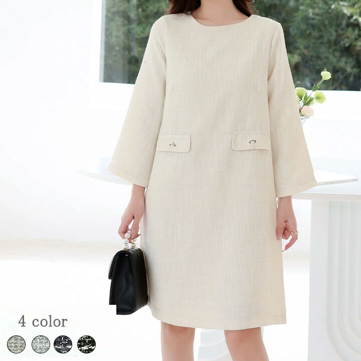 2A49 ツイードワンピース セレモニー 通勤 オフィス フォーマル 卒園式 卒業式 入学式 入園式 おしゃれ パーティドレス 結婚式 謝恩会 ママ 七五三 お宮参り レディース