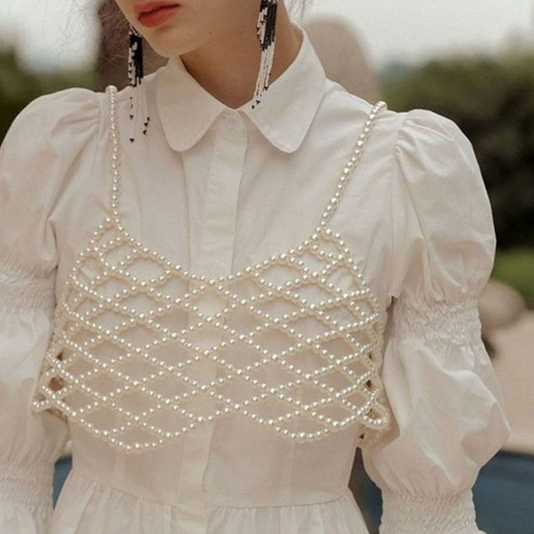 パール ベスト 重ね着 パーティー フォーマル キャミソール レトロ フェイクパール ボディチェーン