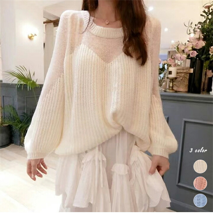 3B36 ニット セーター レディース トップス 長袖 長袖ニット 透け感 ラウンドネック プルオーバー きれいめ お洒落 シンプル 日焼け防止 長袖セーター ニットセーター 韓国ファッショ 冷房対策