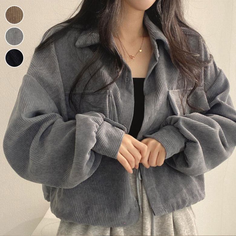 コーデュロイ ジャケット レディース 春 秋 アウター 羽織り レトロ ショート丈 シャツジャケット カジュアル ゆったり 大きめ 襟付き 長袖 長袖ジャケット 韓国ファッション お洒落