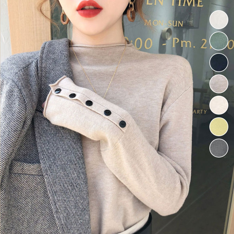 ハーフタートルネック ニット セーター インナー トップス ニットセーター 伸縮性 シンプル スリム