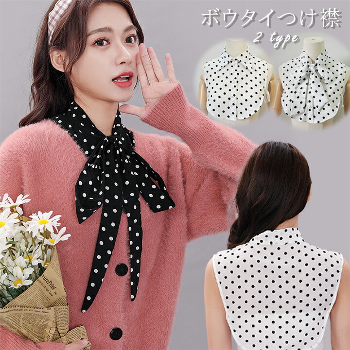 1A16 ボウタイ レギュラー付け襟 レディース ドット柄つけ襟 水玉つけ襟 2タイプから選べる 付け襟 レース レイヤード つけ襟 つけえりレイヤードトップス 襟 ホワイト ブラック 重ね着風