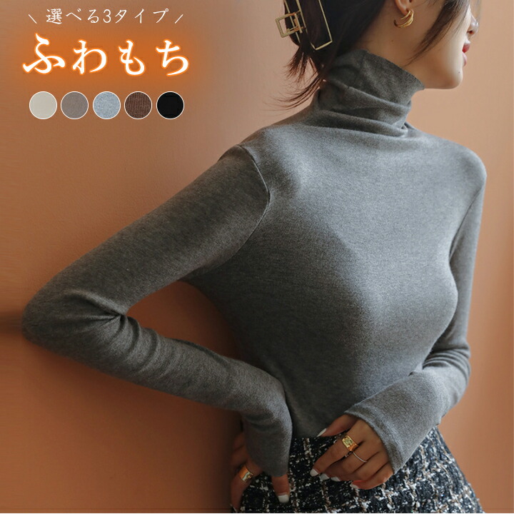 3B11 トップス ふわもち 蓄熱 起毛 選べる3タイプ タートルネック ラウンドネック ハーフタートルネック 裏起毛 レディース あったかインナー レイヤード 黒 お洒落 防寒 Tシャツ長袖 長袖