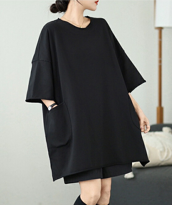 チュニック Tシャツ ロング ワンピース 半袖 夏 大きいサイズ シャツワンピース レディース 無地 ロングシャツ カットソー 大人可愛い ブラウス きれいめ カジュアルオーバーサイズ 体型 トップス