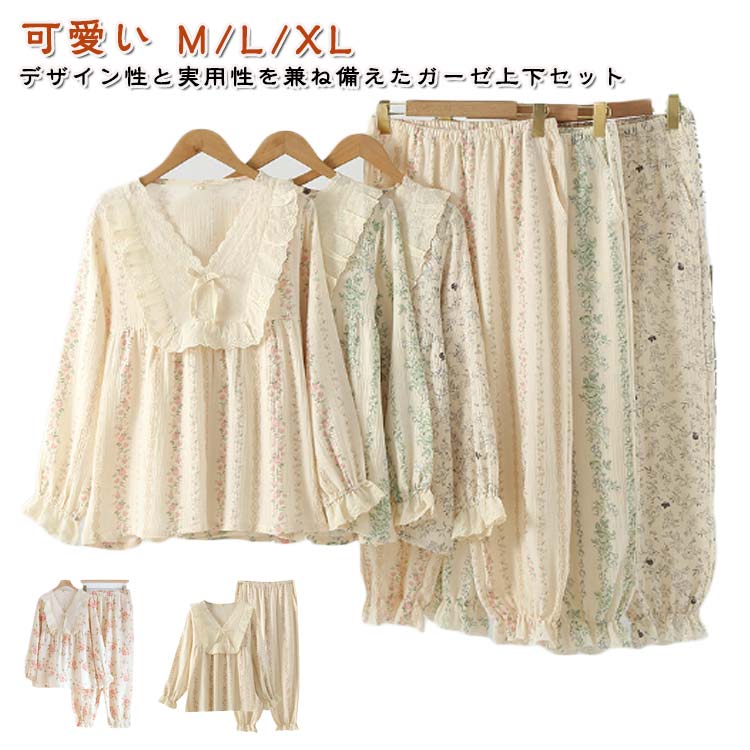 // ガーゼルームウエア 可愛い 上下セット 部屋着 蒸れない 柔らかい
