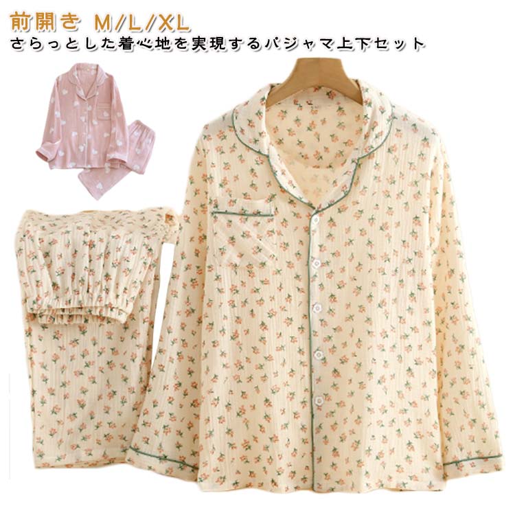 // ガーゼ パジャマ上下セット 前開き 蒸れない 快適 部屋着 可愛い