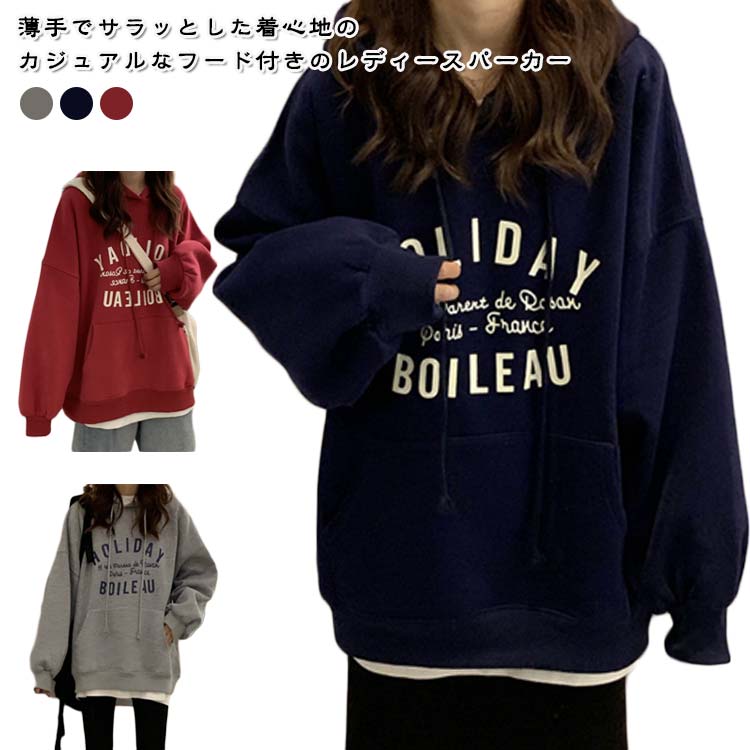 スウェット フード付き 春秋 レディース 長袖 トレーナー プルオーバー トップス 体型カバー パーカー ゆったり 大きいサイズ 可愛い カジュアル おしゃれ お洒落 シンプル 春 着瘦せ