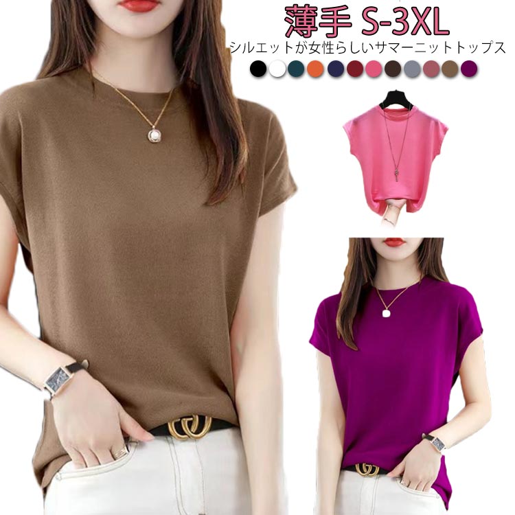 サマーニット トップス 半袖 レディース 春 ネック