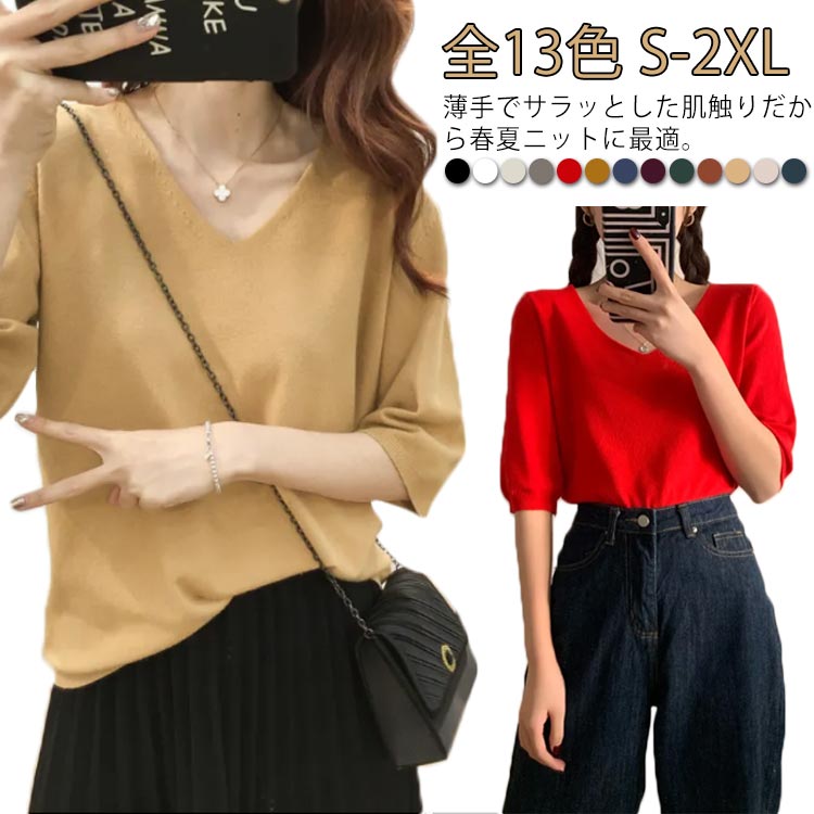 全13色×5サイズ サマーニット カットソー 薄手 レディース ネック 春 夏 ニットセーター