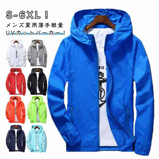 大きいサイズ 長袖 秋 ブルゾン スポーツ フード付き 薄手 アウター 夏 ビジネス 春 UVカットパーカー 大きい 春夏用 パーカー 冷房対応 軽量 通気性 シンプル 無地 紫 日焼け防止