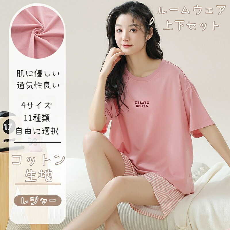 パジャマ レディース 夏 綿 半袖 かわいい ルームウェア Tシャツ ショートパンツ 2点セット 春 薄手 快適 柔らか 吸汗 通気 ゆったり ルーズ 韓国風 部屋着 寝間着 女の子 女性 M L X