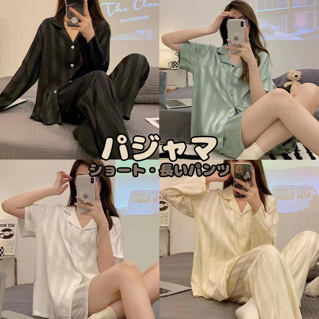 パジャマ ルームウェア ショートパンツ 長いパンツ 部屋着 寝巻き 寝間着 半袖 長袖 サテン 薄手 吸汗通気 肌に優しい かわいい 長袖シャツ 半袖シャツ 滑らか 通気 薄い 涼しい 夏 春 秋 レ