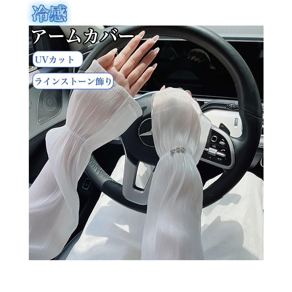 アームカバー UVカット 紫外線対策 日焼け止め 冷感 ひんやり 伸縮性 快適さ 腕カバー パール飾り お洒落 吸汗速乾 ダイヤ飾り 通気性拔群 夏 冷房 冷え対策 アームウォーマー uvケア クール