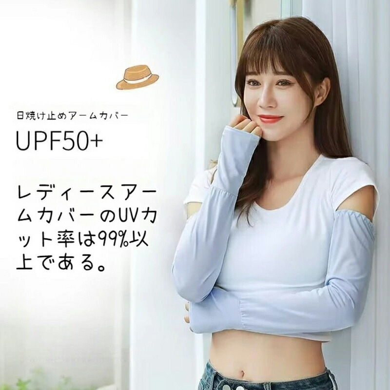 接触冷感アームカバー 紫外線対策 50+ アームウォーマー ケア ひんやり クール 日焼け 日よけ やけど防止 指穴付き 指掛け 手の甲 伸縮 洗える ずれ落ち防止 ファッション