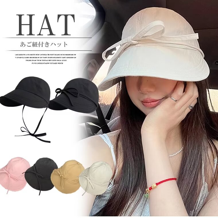 リボン紐はコーデに合わせて自由アレンジ 5色展開 2 あご紐付き 帽子 対策 つば広 キャップ レディース 小顔効果 日よけ 折りたたみ アウトドア 自転車帽子 日除け対策 春夏