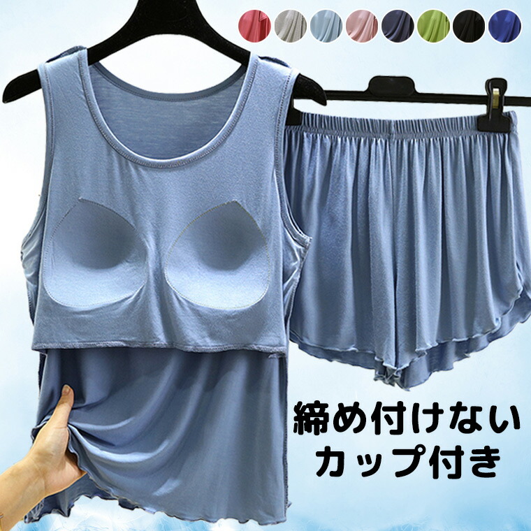 脇下カバーでだらしなくない 上下セット 柔らかもっちり パット付タンクトップ ショートパンツ ネック アンダーフリー ゴムなし ブラトップ 締め付けない 前のみ パッドのみ 固定 ルームウェア カッ
