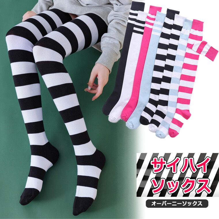 超ロング ボーダー サイハイソックス オーバーニー ニーハイ コスプレ ハイソックス 23~25cm 長さ約70cm