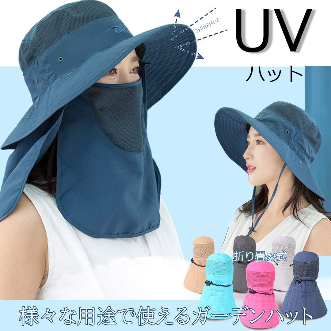 通気性にも優れ メッシュ切替 UVカット つば広 帽子 フェイスカバー ハット ネックカバー 紐付き アウトドア 紫外線対策