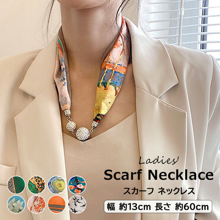 マグネット式で簡単ワンタッチのスカーフネックレス♪ スカーフ ネックレス 簡単ワンタッチ マグネット レディース スカーフアクセサリー アクセサリー 小物 全8柄