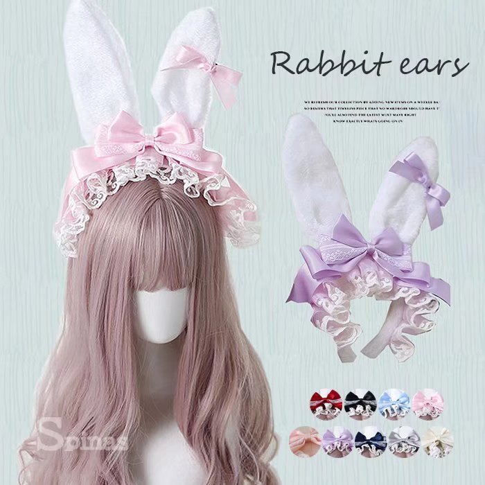 ロリータファッション&コスプレにおすすめ 全9色 ふわふわ ウサギ耳 カチューシャ 髪飾り 蝶結び ヘアアクセサリー ゴスロリ 萌え コスチューム メイドカフェ