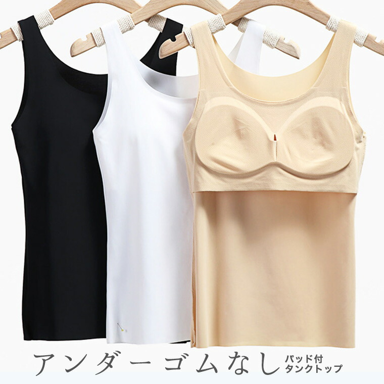 アンダーゴムなし ですっきりした着心地 カップ付きタンクトップ 取り外し 取外し パッド パット 切りっぱなし