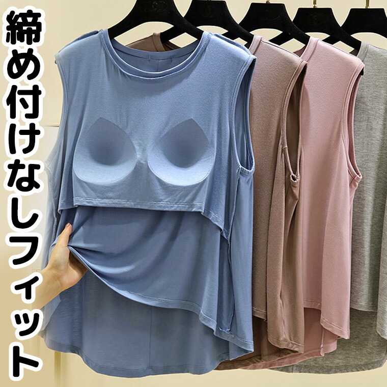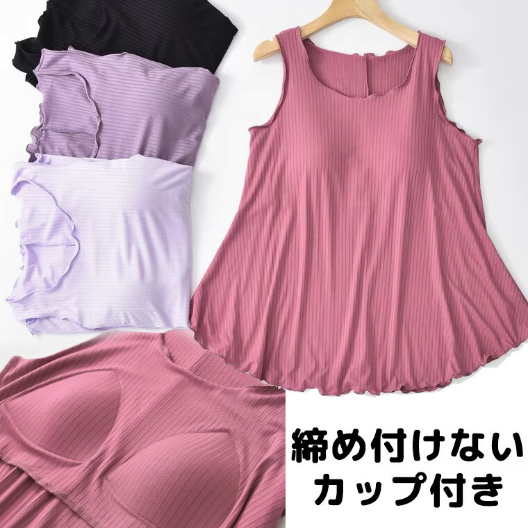 締め付けない ズレない アウターで着れる 40代 50代 パット付 くすみカラー タンクトップ アンダーフリー ゴムなし ブラトップ 前のみ パッドのみ 固定 ルームウェア カップ付き インナー 袖な