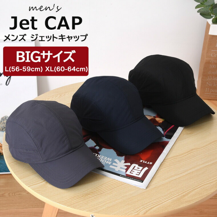 頭が大きい人にオススメ♪ビックサイズのジェットハット キャップ ジェットキャップ メンズ 帽子 アジャスター 通気口あり 日除け ハット 日よけ 無地 シンプル 選べる2サイズ 全3色