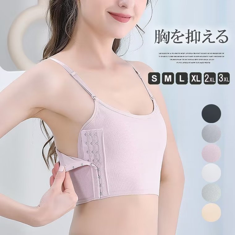 ボリュームダウン キャミソール ナベシャツ インナー 補正下着 胸つぶし 男装 ホック付き 大きな胸を小さく見せる ハーフトップ 胸揺れ防止 胸サポーター バストダウン