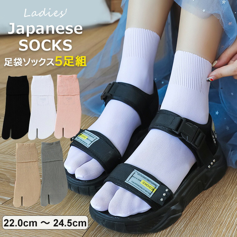 足袋ソックス レディース 5足組 フリーサイズ 22-24.5cm 二本指 靴下 足袋 春 夏 秋 無地 シンプル おしゃれ おすすめ 大人 かわいい カラーソックス 全10タイプ