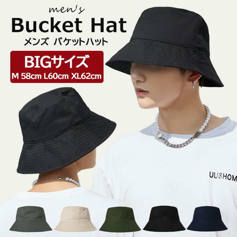 頭が大きい人にオススメ♪ビックサイズのバケットハット キャップ バケットハット メンズ 帽子 つば広 8cm 日除け UPF50+ ハット 日よけ 無地 シンプル 選べる3サイズ 全5色