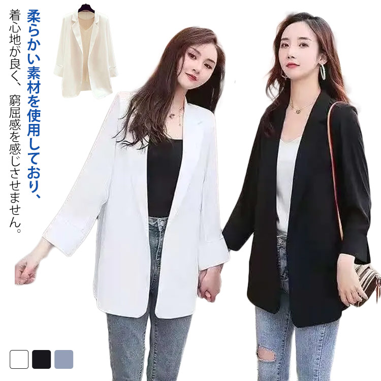 春ジャケット オフィス 春 夏 薄手 ジャケット カジュアル 休日 ゆったり 長袖 きれいめ テーラードジャケット トップス 通勤 アウター レディース シンプル ビジネス サマー スーツジャ 羽織り