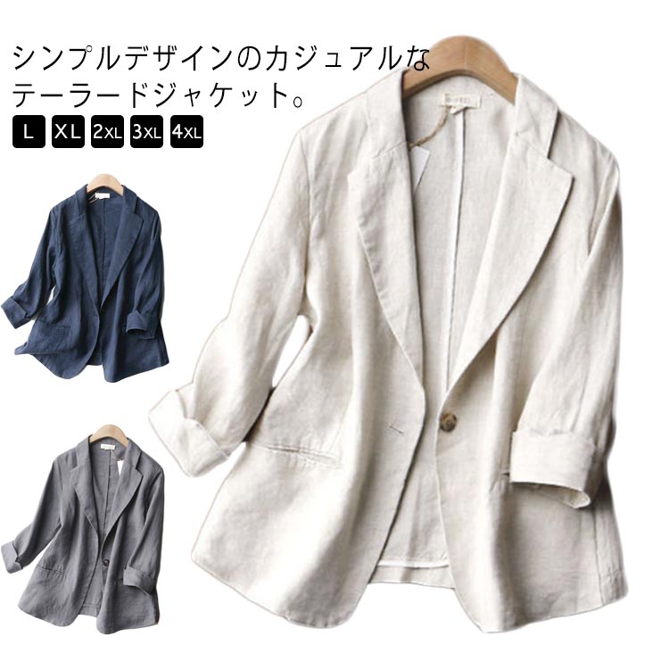 サマージャケット レディース テーラードジャケット リネン 7分袖 長袖