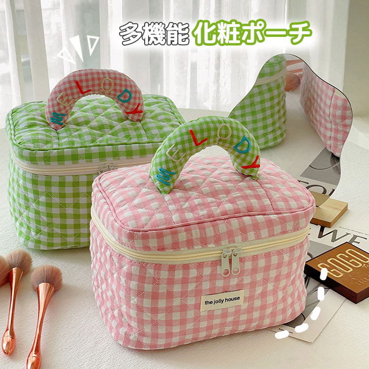 コスメバッグ チェック柄 かわいい メイクポーチ 化粧ポーチ バニティケース トラベル 学生 女の子 ガールズ 収納ボックス 化粧品 多機能収納 雑貨 小物入れ 出張用バック 軽量 機能的 大容量 ピ