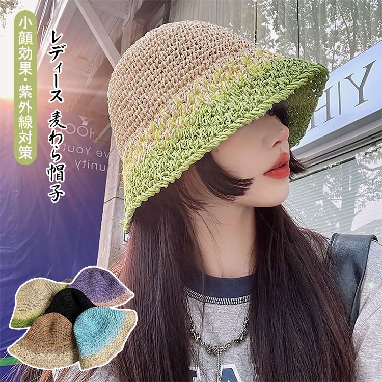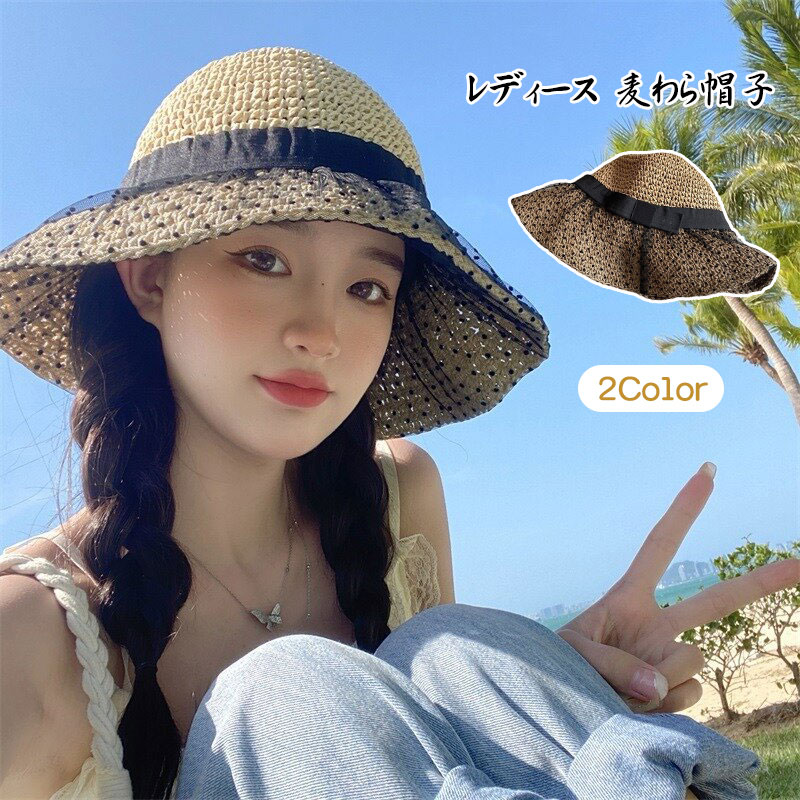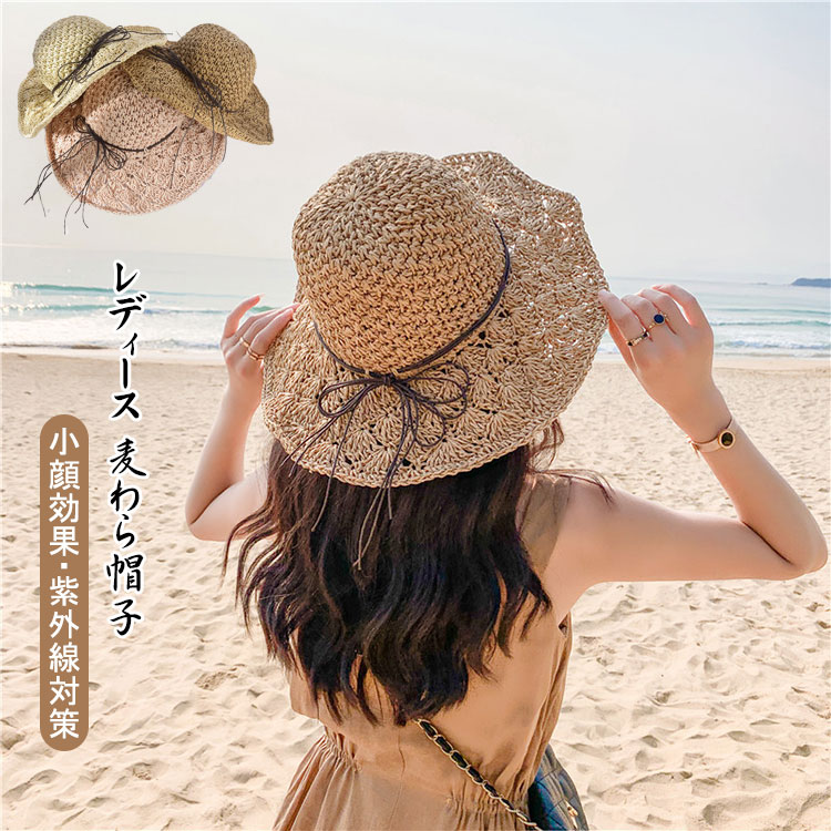 レディース 麦わら帽子 帽子 ハット 日焼け防止 uvカット 小顔効果 通気性いい 折りたたみ 女優帽 アウトドア 54-58cm 海 散歩 旅行 登山 通勤 春夏 6色