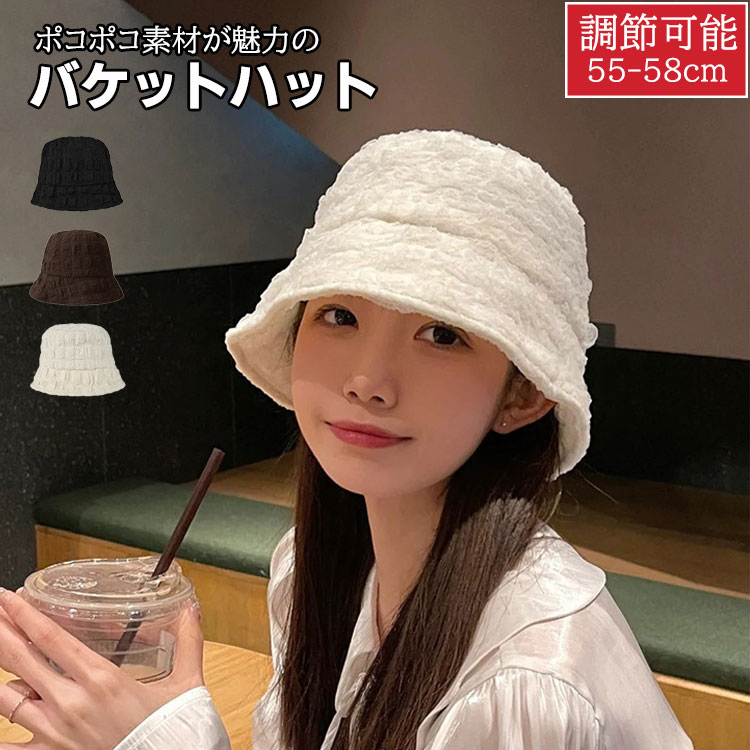 バケットハット 春夏 レディース 帽子 ポコポコ ぽこぽこ ポップコーン ハット 小顔 折りたたみ バケハ 深め 遮光 UVカット ベージュ ブラウン ブラック 可愛い お洒落