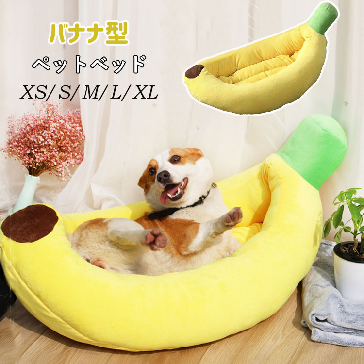ペットベッド バナナ型 ベッド 犬ベッド 小型犬 中型犬 猫 かわいい おしゃれ オールシーズン 洗える 猫ベッド バナナベッド イエロー ふわふわ 暖かい 冬 保温 寒さ対策 XS S M L XL