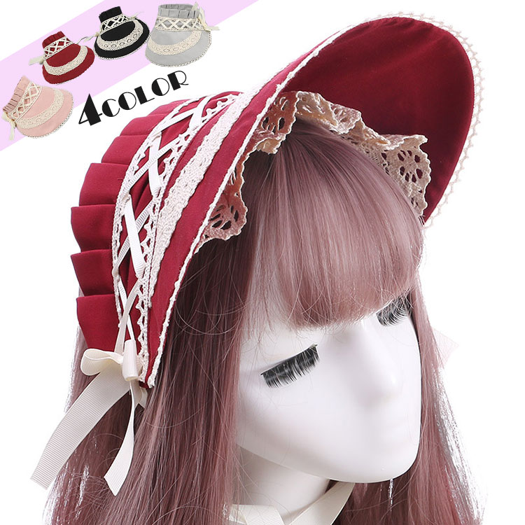 ロリータ ボンネット 帽子 レディース 4色 ヘッドアクセサリー ロリータファッション ヘアアクセサリー コーデ ハット レース 甘ロリ 姫ロリ ロココ調 リボン かわいい エレガント コスプレ