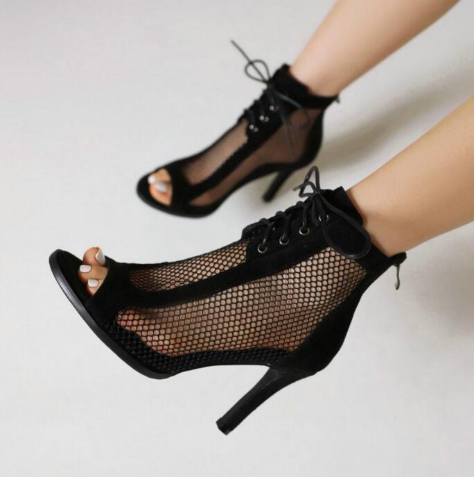 サマーブーツブーツサンダルレースアップハイヒールサンダル夏9センチヒールレディース靴26.5センチまで編み上げブーツ